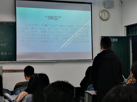 班会包含三部分内容:我国现阶段面临的粮食问题、节约粮食的意义和如何去节约粮食。通过ppt讲解、提问、讨论、播放视频等方式让同学们了解粮食的种类、周期以及特征,使同学们对我国现阶段要面临的粮食问题有了进一步了解,一粥一饭,当思来之不易。认识到珍惜粮食和节约粮食是每一个公民的责任和义务,应为营造节约粮食光荣、浪费粮食可耻的良好社会风气做出贡献。