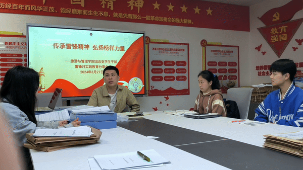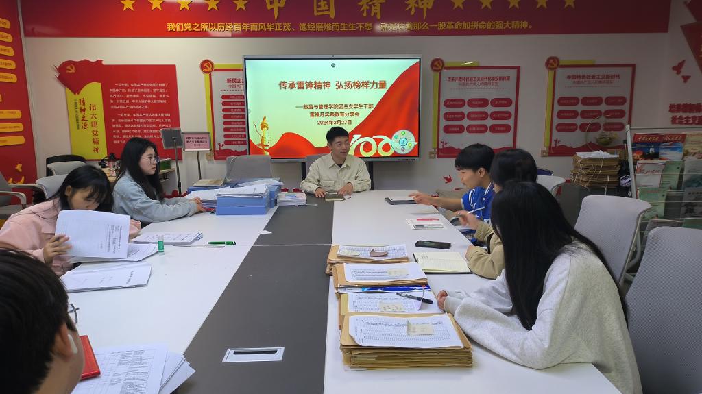 2024年3月27日,PA视讯团总支开展“传承雷锋精神,弘扬榜样力量”雷锋月主题教育实践分享会,会议由团总支书记文阳兴家主持,全体团学干部参加。旅游与管理公司党总支副书记周嵘参加会议。