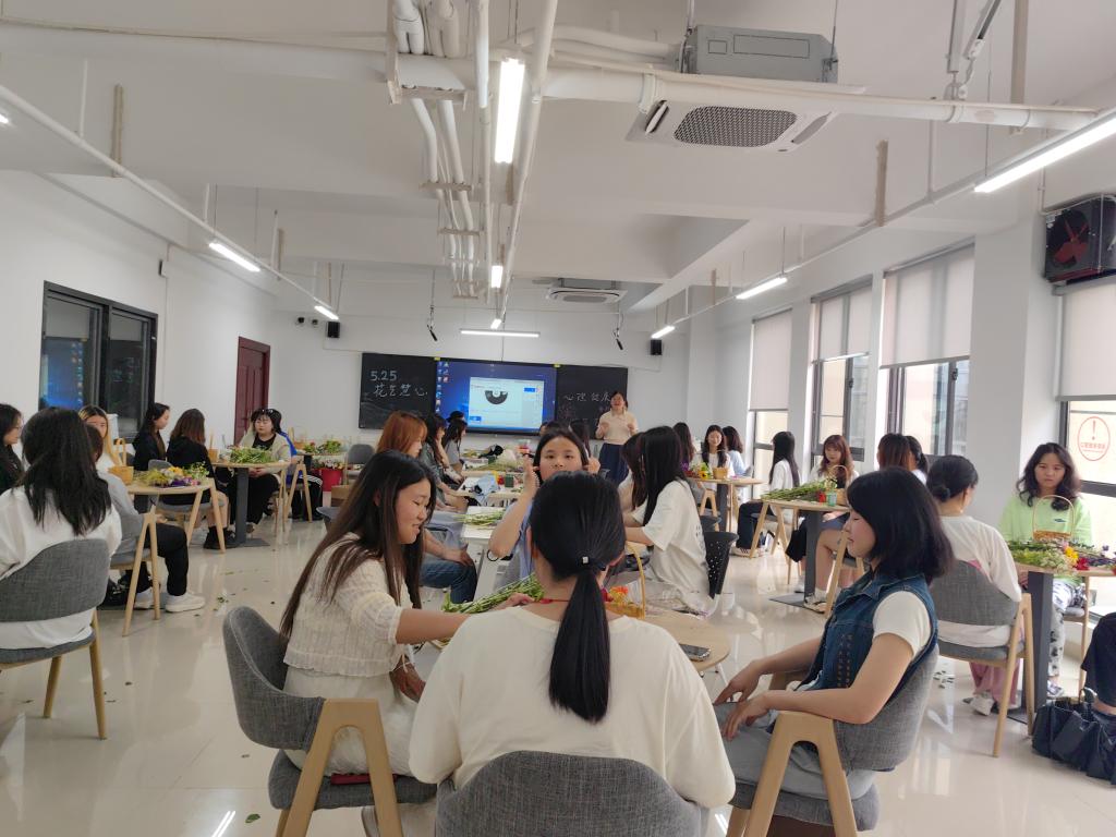此次花艺活动中,同学们在专注花艺的当下同时思考自己的人生,回顾现在的困惑和未来的迷茫,在选择鲜花类型、颜色、插花方式时,亦如生活中的选择,帮助同学们思考未来的道路。(王婷)