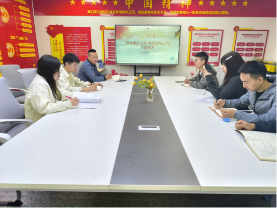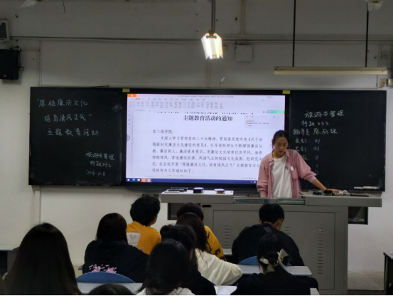 为使本次活动取得更好的效果,采用“党建带团建”的形式在员工层面开展教育宣传。2023年10月8日-10月9日,各团支部、各班级陆续开展了主题班会,员工党支部党员和各班级辅导员深入各团支部、各班级组织同学们学习廉洁文化知识、讲解相关法规和政策。在主题班会中,党员、老师们结合自身的工作经验,生动形象地介绍了一些反腐倡廉的典型案例,并就如何加强自律和防范不良风气进行了深入浅出地引导和教育。此外,为了丰富员工的知识面,团学组织还开展了廉洁文化知识竞赛等活动,以此引导同学们更深入地了解廉洁文化,增强员工的反腐意识。