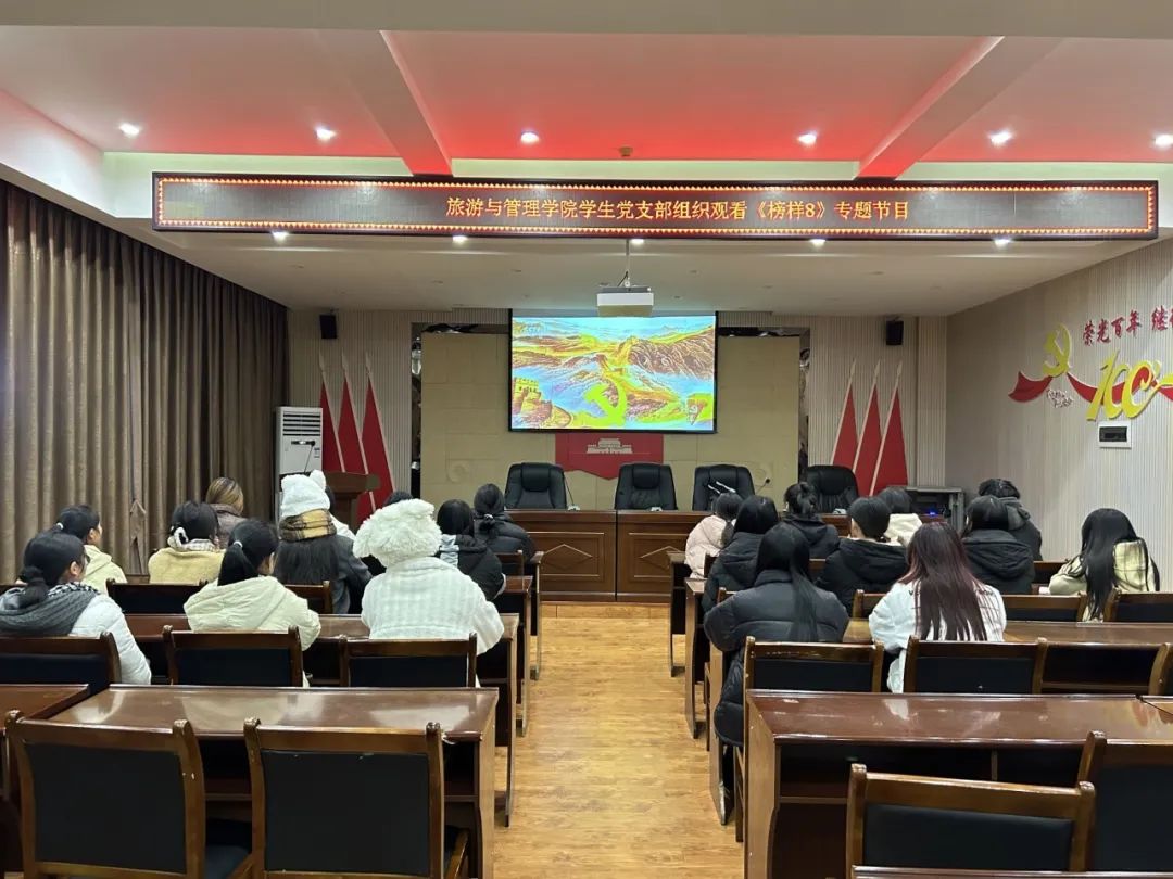 本期专题节目邀请了钱七虎、刘玲琍、唐菊兴、吴惠芳、李桂科、热孜万古丽·沙吾提6名党员和浙江省余姚市梁弄镇横坎头村党委参加录制,通过典型事迹展示、现场访谈、重温入党誓词等形式,生动展现学习践行习近平新时代中国特色社会主义思想突出事迹,以及坚定信念、践行宗旨、拼搏奉献、廉洁奉公的高尚品质和精神风范,彰显基层党织战斗堡垒作用和党员先锋模范作用。榜样是看得见的标杆,是听得见的号角。下一步,旅游与管理员工党支部在组织观看后《榜样8》的专题节目后,将继续大力宣传先进事迹,利用微信等平台进行宣传教育,营造见贤思齐、争做先锋的良好氛围,激励全体党员和入党积极分子将初心融进灵魂、把使命扛在肩上,以实际行动奋进新时代!