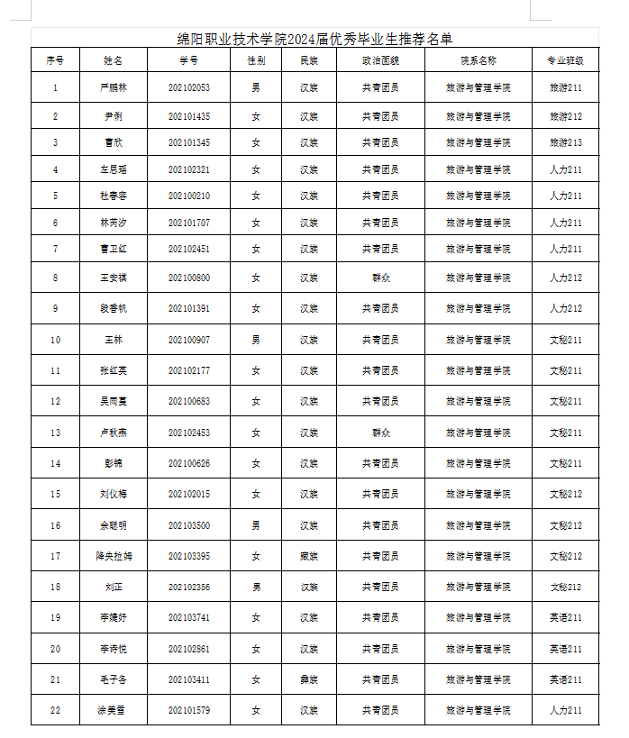 附件:PA视讯平台2024届优秀毕业生推荐名单