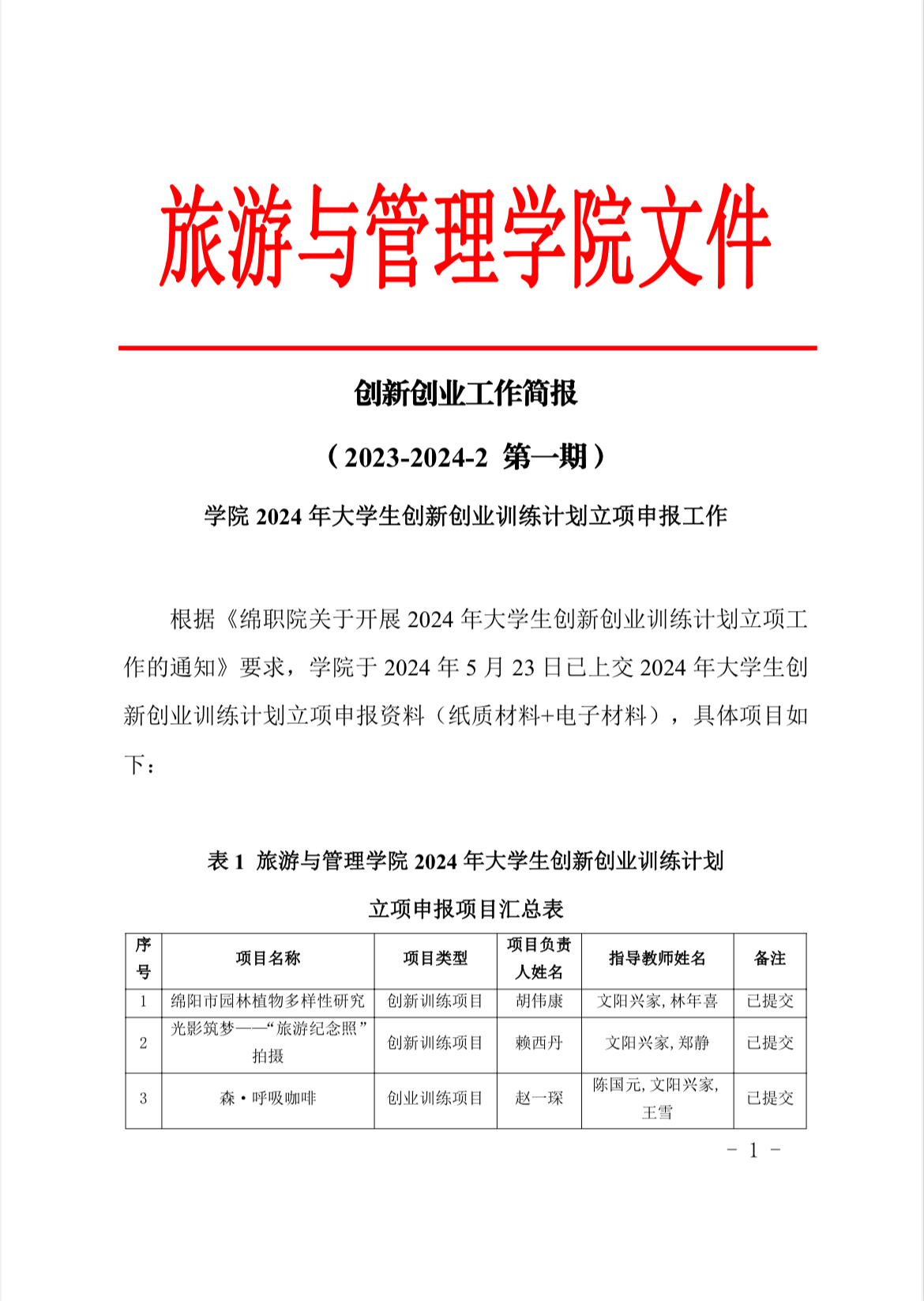 创新创业工作简报(2023-2024-2 第一期)