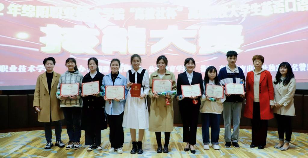 竞赛分“职场描述”和“中国故事”两个环节,评分各占总成绩50%,通过现场抽签的方式抽取赛题,并限时备赛,竞赛按专业和非专业两个组别分类评奖。经过2个半小时的激烈比拼,两个组别分别决出一等奖2名,二等奖3名,三等奖4名。最终应用英语201班赖雨婷以89.9分获得总分排名第一,将获得资格代表公司参加2022年全国职业院校技能大赛英语口语赛项。