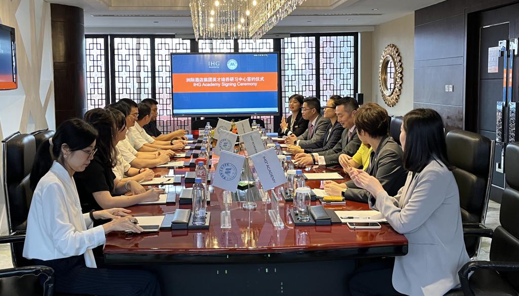 洲际酒店集团大中华区人力资源部早期职业生涯管理及雇主品牌高级经理邵啸川,中国西区资深人力资源经理张海燕、中国西区人力资源经理吴雅秋,成都世纪城天堂洲际酒店群的管理团队代表;公司国际交流与对外合作处处长湛艳琳,旅游与管理公司党总支书记苟安经、副经理肖昆,PA视讯教师代表参加协议签订仪式。(陈丽媛)