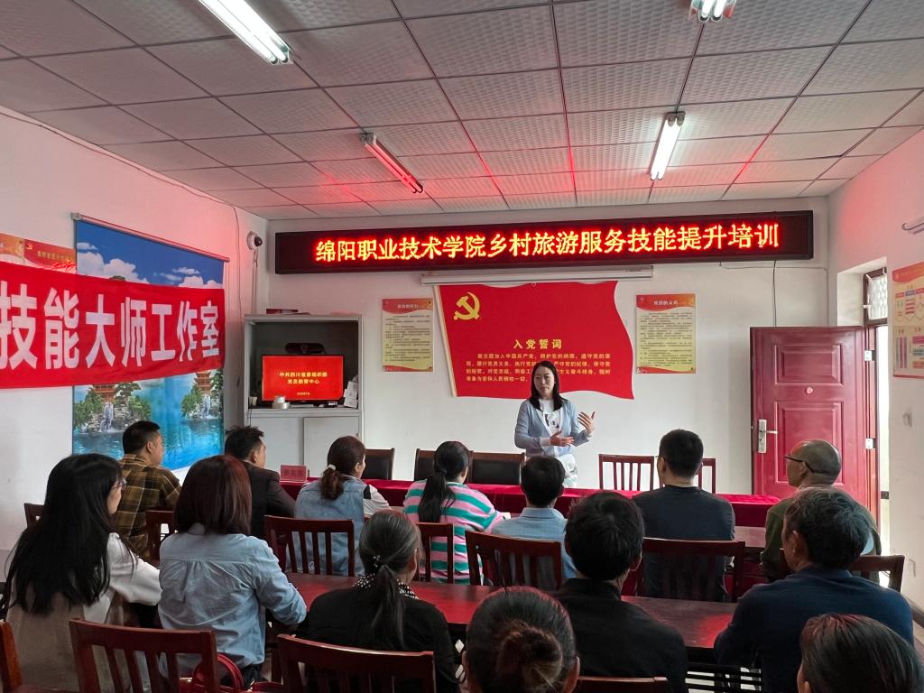 绵阳市王文俪导游服务技能大师工作室领办人王文俪老师面向双紫村的旅游从业人员和致富带头人,开展了乡村旅游服务技能提升培训。