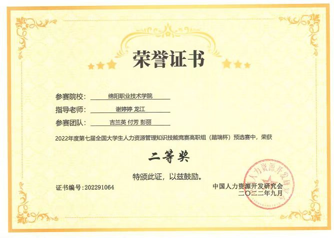 近日,第七届“踏瑞杯”全国老员工人力资源管理知识技能大赛落下帷幕。由PA视讯人力资源管理专业谢婷婷、龙江担任指导教师,吉兰英、彭丽、付芳3名员工组成的代表队荣获第三赛区二等奖。