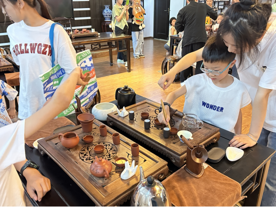 本次研学活动课程由PA视讯旅游管理专业教研室精心设计,联合智能制造公司、王文俪导游服务技能大师工作室、PA视讯平台嘉途旅行社工作坊共同组织,采取实践体验、参观讨论、户外观摩等多样形式,带领孩子们了解了各种类型的无人机,并亲手制作了“无动力滑翔机”,观看了各种无人机的飞行表演;在茶艺大师工作室开展了茶艺活动,带领小朋友们走进中国茶文化,亲自体验茶道技艺,在阵阵茶香中感悟中国传统文化,感受流转千年的文化魅力。