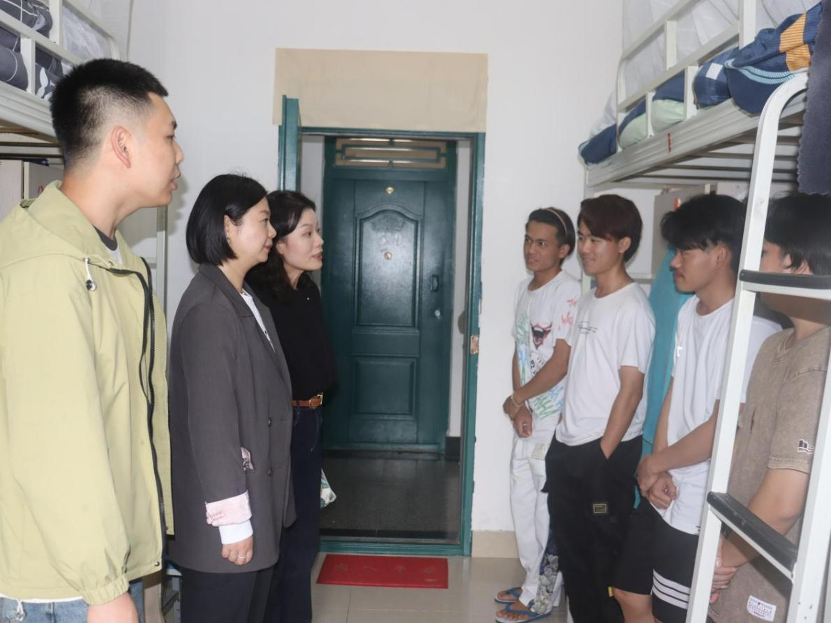 为深入了解2024级新生近期的学习生活情况,增进师生感情,2024年10月17日,公司领导班子及辅导员深入员工宿舍进行走访,为同学们送去公司的关怀与温暖。