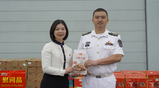 活动中,公司教师向“绵阳舰”官兵赠送书籍,以丰富官兵们的业余文化生活。同时,慰问组还赠送了羌族草编、刺绣、水墨漆器、梓潼木刻年画、炳林毛笔等绵阳非遗文化作品和绵阳米粉、香肠、腊肉等绵阳特产,向官兵们致以崇高敬意和新春问候。“绵阳舰”官兵向慰问组回赠了舰模、舰徽、舰帽等纪念品,体现了鱼水情深,更代表了舰艇官兵对家乡人民的深情祝福。